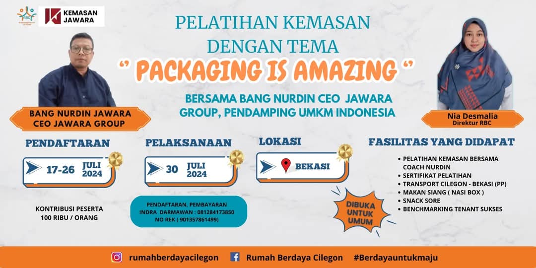 Jadilah bagian dari Rumah Berdaya Cilegon untuk meningkatkan Level UMKM Anda. Gabung bersama dan Saatnya Maju Bersama RBC.